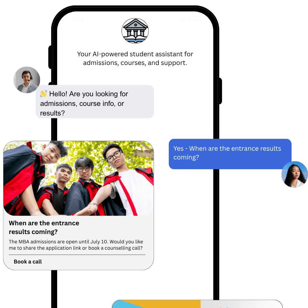 We don’t build generic chatbots. We design AI agents that handle admissions, course