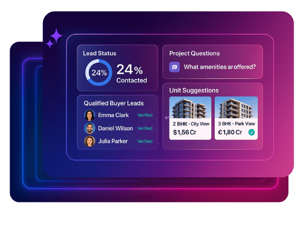 AI that answers project questions, qualifies leads, suggests units, and drives bookings.