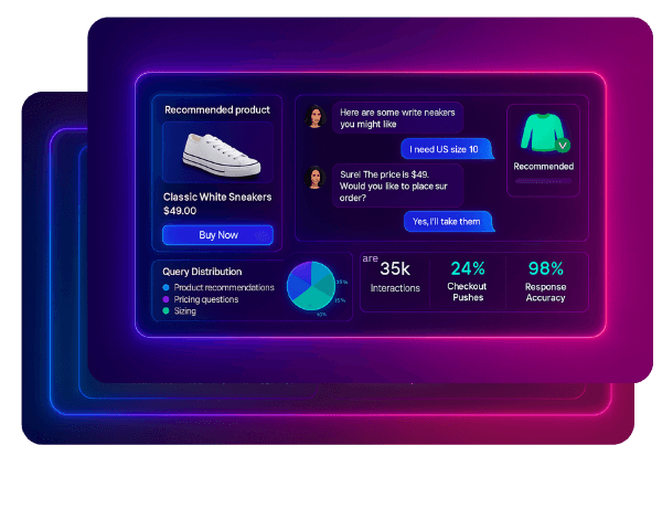 AI that recommends products, answers pricing, manages sizing queries, and pushes checkout.